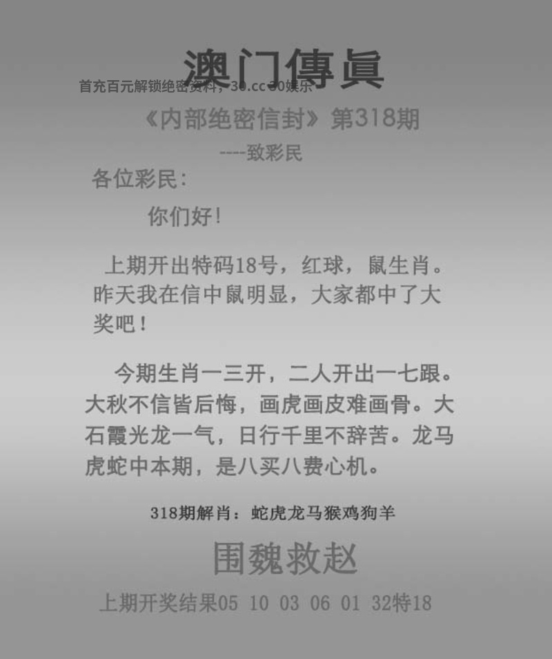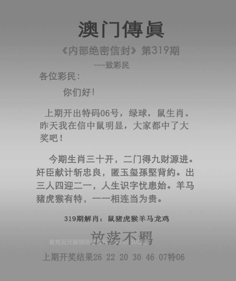 | 320期九肖30码【精准四码】已公开! |